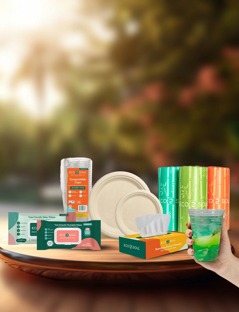 With reliance on natural materials like sugarcane and palm leaves, our products are tree-free