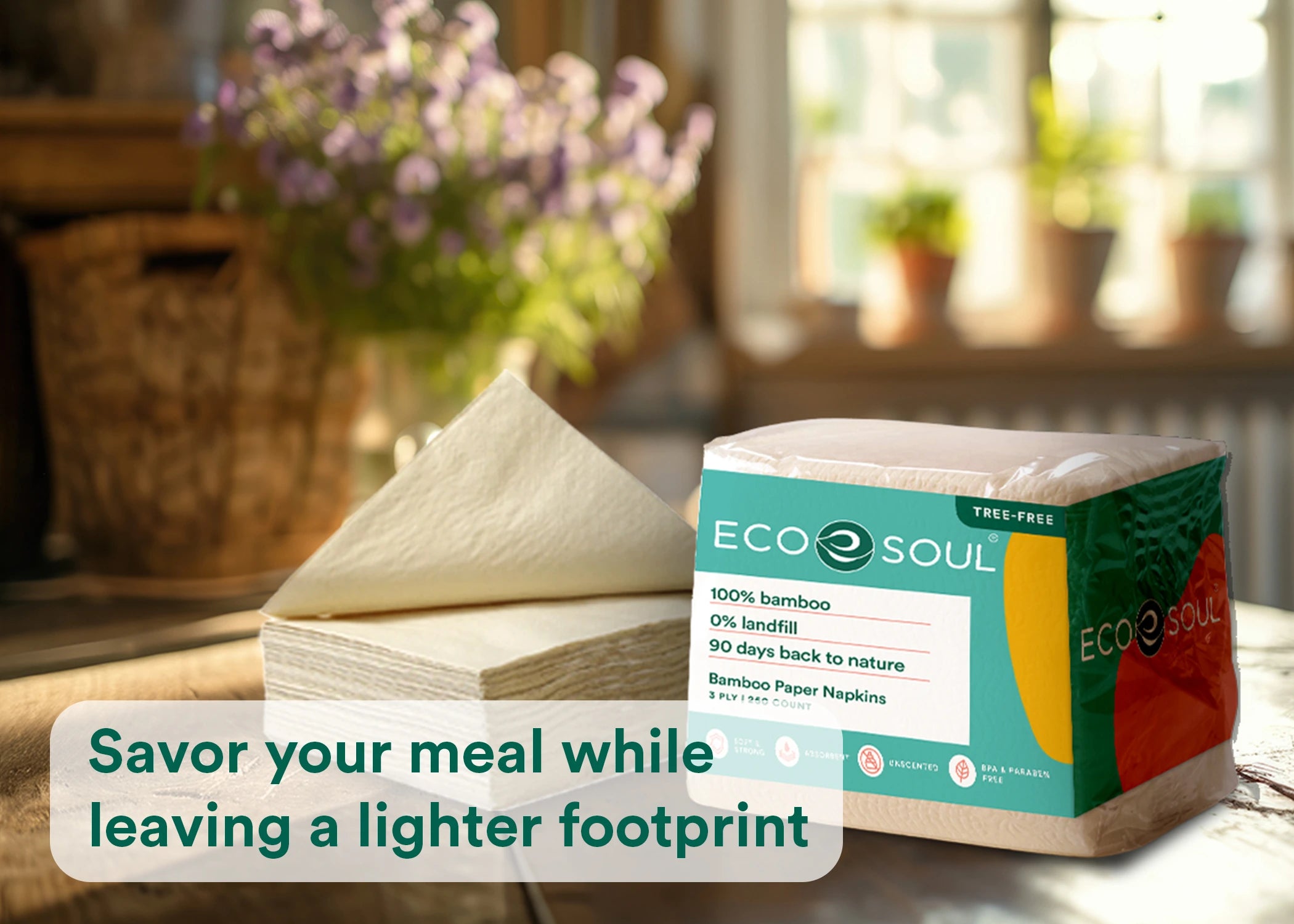 It's true that paper napkins are pretty convenient and provide easy disposal, especially if compared to cloth napkins. However, what about the impact? We at EcoSoul are here so you can enjoy all those messy meals without making it a mess for the planet.