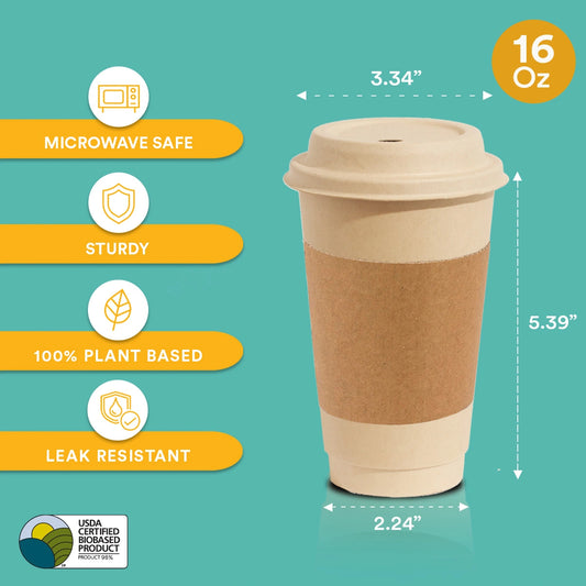 16 oz Compostable Hot Cups with Lids and Sleeves