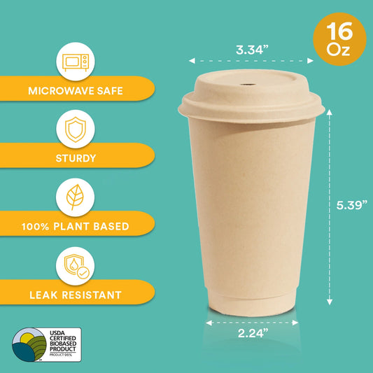16 oz Compostable Hot Cups with Lid