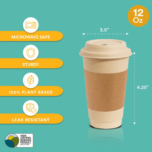 12oz Compostable Hot Cups with Lids and Sleeves