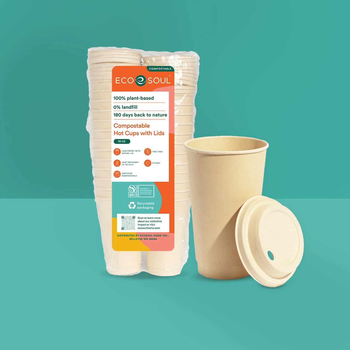 However, we, at EcoSoul, are here to embrace a circular economy. Made from upcycled plant waste, like sugarcane bagasse, these eco-friendly 16oz coffee cups with lids are USDA-certified for being bio-based (plant-based).