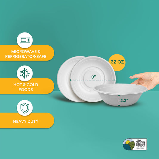 Our palm leaf biodegradable bowls, with their rustic designs and excellent structure, are ideal for adding a minimalistic yet bougie aspect to all of your table settings. These bowls, made from naturally fallen Areca palm leaves, are not just environmentally friendly. They're also extremely durable, toxin-free, and microwave-safe. Furthermore, sugarcane biodegradable bowls provided a "sweeter" touch with their simple design, rigorous quality, and certified compostability.