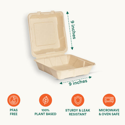 9inch Square Compostable Clamshell Online, 9inch Square Compostable Clamshell Containers, 9inch Eco-Friendly Clamshell Containers, Organic 9inch Square Clamshell Containers, 9inch Clamshell Containers